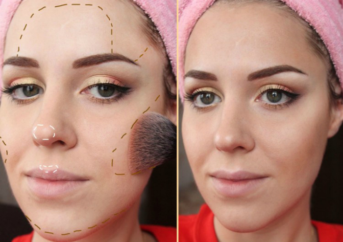 Бронзер — это волшебное средство, позволяющее значительно улучшить цвет кожи и сформировать правильный овал лица. Однако, каждая девушка должна знать, что бронзер — не пудра для лица и наносить его следует исключительно на выступающие участки лица: Внешний край лба, виски, скулы и подбородок.