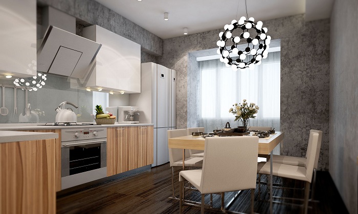 Оригинальные люстры в интерьере кухни сделают свое дело и создадут необыкновенную атмосферу.