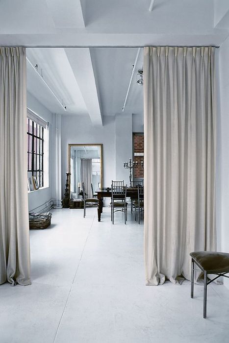Гармоничное зонирование всегда стоит на первом месте при оформлении любого интерьера. у каждой жизненно важной области должны быть чёткие границы, но не всегда их можно обозначить при помощи стен или перегородок. Вот тогда и пригодятся самые обычные шторы, которые помогут лаконично разделить интерьер и сделать его визуально легче.