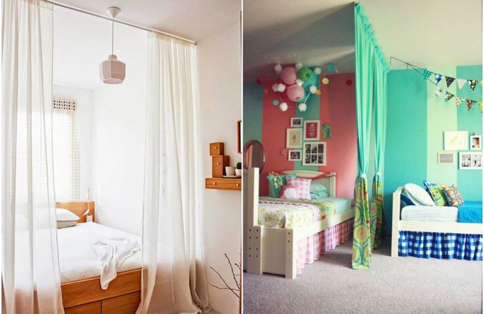 Штора, как зонирующий элемент: варианты использования и 10 удачных примеров